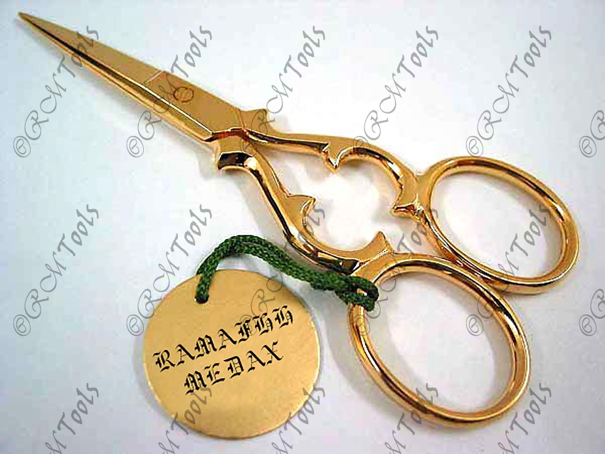Fancy Scissors.             10.5cm   Gold Plated  FINISH. Large finger holes  for extra comfort while cutting.